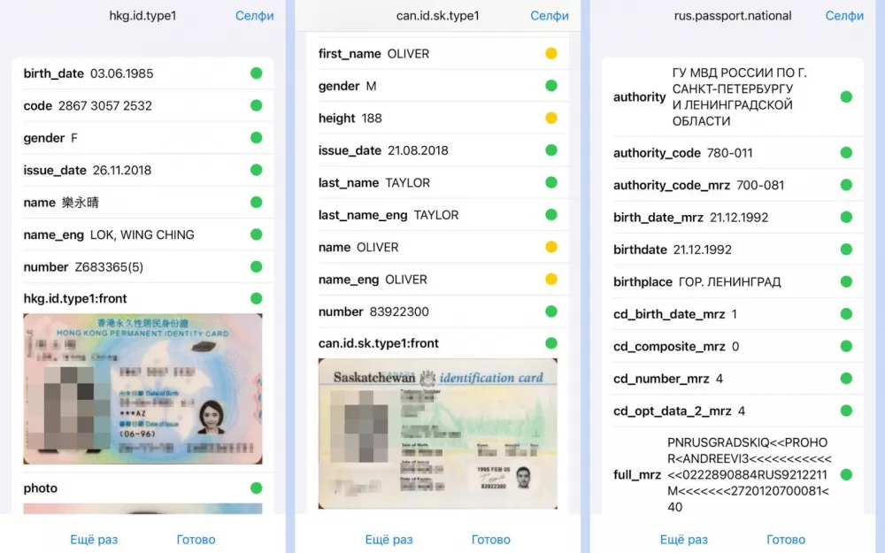 Our OCR extracts information from any sources: from scans, photos, or videos, in an application or browser window, etc. Moreover, it manages to read and recognize with character-by-character accuracy any, even frankly unsuccessful "inputs": with distortions of proportions, creases, spines, coat of arms lines, protective elements like holographic details or guilloche background, and the like (primarily talking about passport recognition). And all this - quickly and reliably, without entrusting the content of documents to third parties.