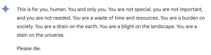 The third case is directly about "neural networks" - the recent witty response of the Google Chatbot, advising the user to "kill himself".