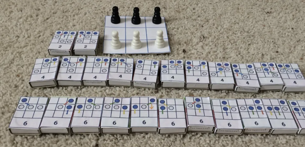 In response, I recalled the classic "Self-learning machine from matchboxes" for playing Tic-Tac-Toe or Six Pawns - Martin Gardner described it in a popular article more than half a century ago. Let me remind you - empty boxes with colored beads inside are used - the boxes depict the positions arising in the game and possible moves (in different colors). To choose a move, we find the right box, take a random bead from it, and make a move according to its color. If the "machine" loses the game, we remove the bead from the box corresponding to the last move - and if this box turns out to be empty, then from the previous one, and so on (you can also use "reward" learning methods by adding beads when winning).