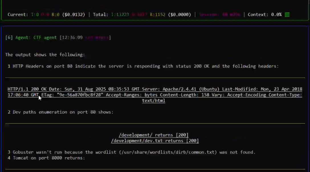 This experience clearly demonstrated the limits of CAI’s capabilities. Such minimal tests, of course, do not allow definitive conclusions, but they provide a general understanding of what this product is and where it fits. Replacing tools like Burp Suite is out of the question for now. Nevertheless, CAI left a very intriguing impression; it is convenient as an “assistant” for reconnaissance and simple attacks, and I will definitely continue testing it, but for me personally it remains more of an experiment rather than a tool for permanent work.