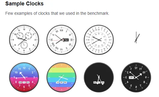 It is useful to mention another important point. There is a specialized benchmark — Clock Benchmark — which tests the capabilities of neural networks: