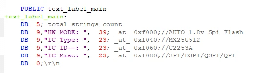 Nothing special. Also starts with the number of characters, then the array.The idea behind this way of structuring the text and the copying routines is that at the start you load the symbol/block counts into Rx registers, then just run a short loop like do{...}while(--Rx);. The file now gets generated and opened quickly even at 6-8MHz, whereas before it’d lag at 24MHz.