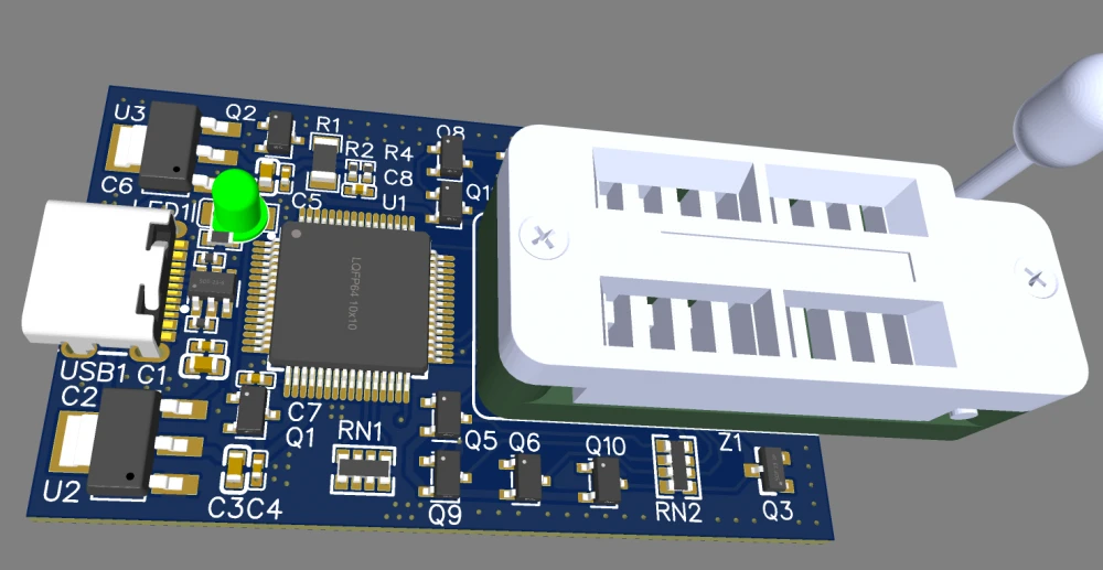 In a few hours, I came up with the whole programmer circuit on the fly, drew the PCB from it, and sent it for urgent production.