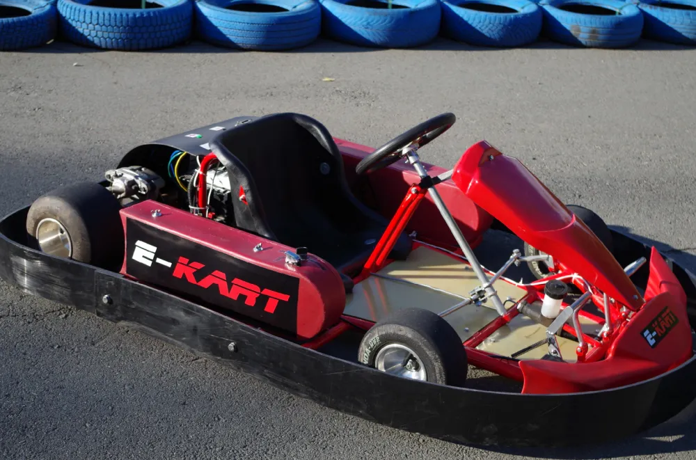 The first thing you notice when you take the wheel of an electric go-kart is the lack of vibration. Many petrol go-kart enthusiasts are familiar with the tremors in their hands after a long race. E-kart is completely free of this issue.