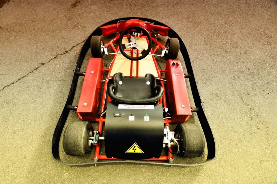 A pleasant addition for karting lovers is the presence of reverse. If a participant crashes into a barrier, there is no longer a need to wait for assistance from the service crew. Now, using a switch located on the front panel, the driver can simply switch the electric drive into reverse and move back on their own.