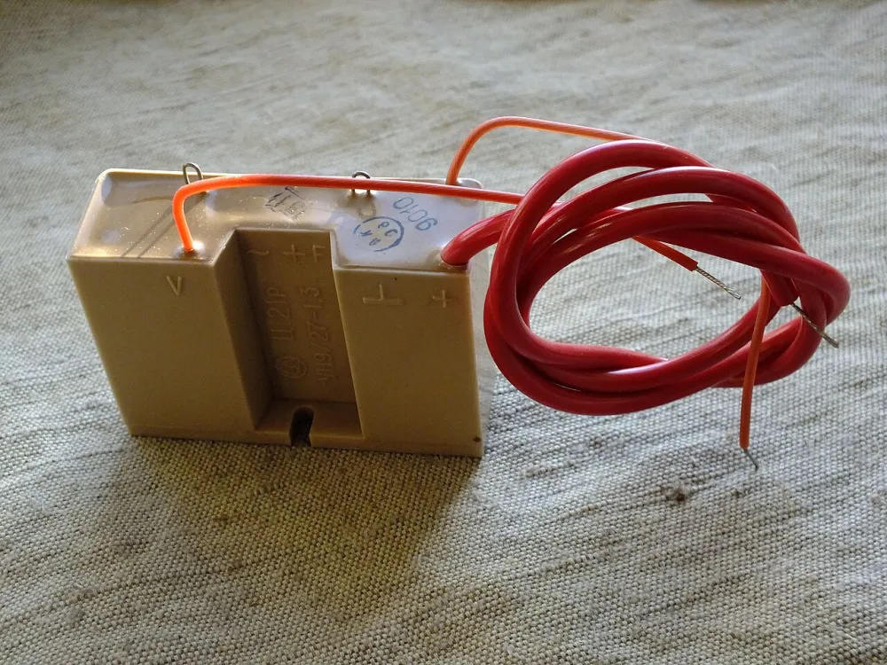 I remember, back in the day when I built a homemade photocopier (yes, it was a strange idea! :-)), I used the flyback from an old television as a high-voltage source, to the output of which a multiplier like this one was connected (only mine was "blue" :-D; below we see an assembly of the multiplier, in a plastic case, filled with compound)—and the spark "shot out" at least 10 centimeters: