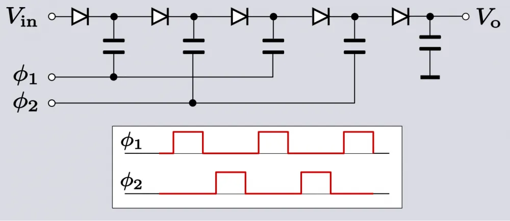 Nevertheless, there is one type of multiplier that we all encounter without even knowing it — used as a micro version (in integrated circuits) for constant voltage, essentially representing a variant of a kind of dc-dc converter (Dickson charge pump), where the voltage is increased to another level, and this can be used in different parts of the integrated circuit as a compact means of flexible power management to reduce energy consumption.