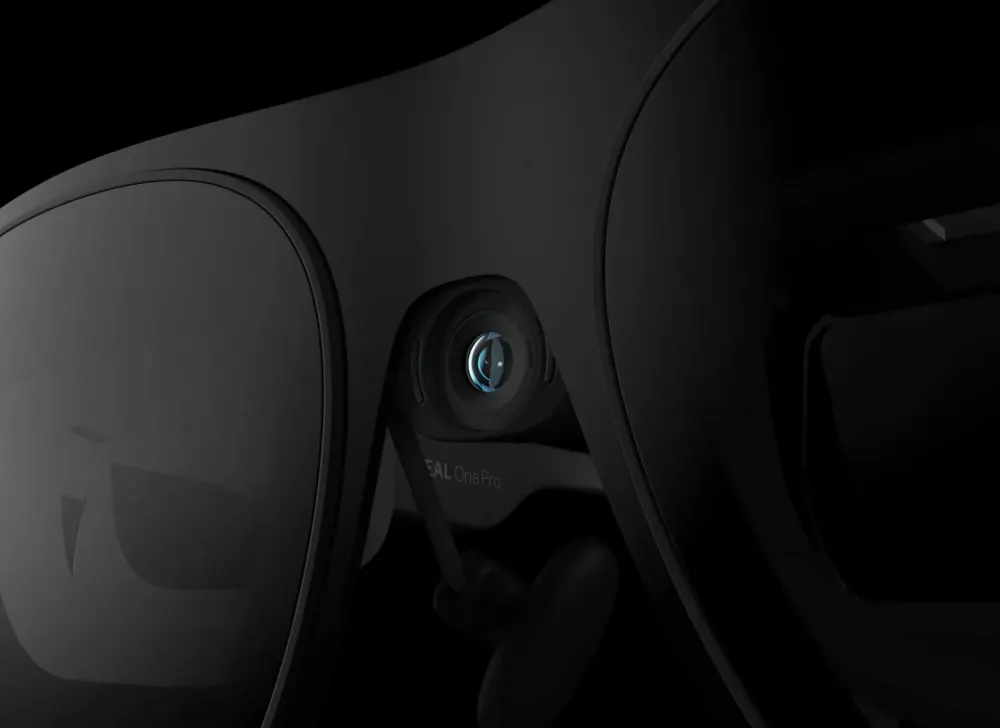 The Xreal X1 chip provides 3DoF tracking (head rotation tracking) without external modules. Connectivity is via USB-C to phone, PC, or Steam Deck. The Xreal Eye camera ($99) supports photo, video, and 6DoF tracking in beta mode, but the image quality is disappointing — pictures and videos are blurry compared to smartphones.