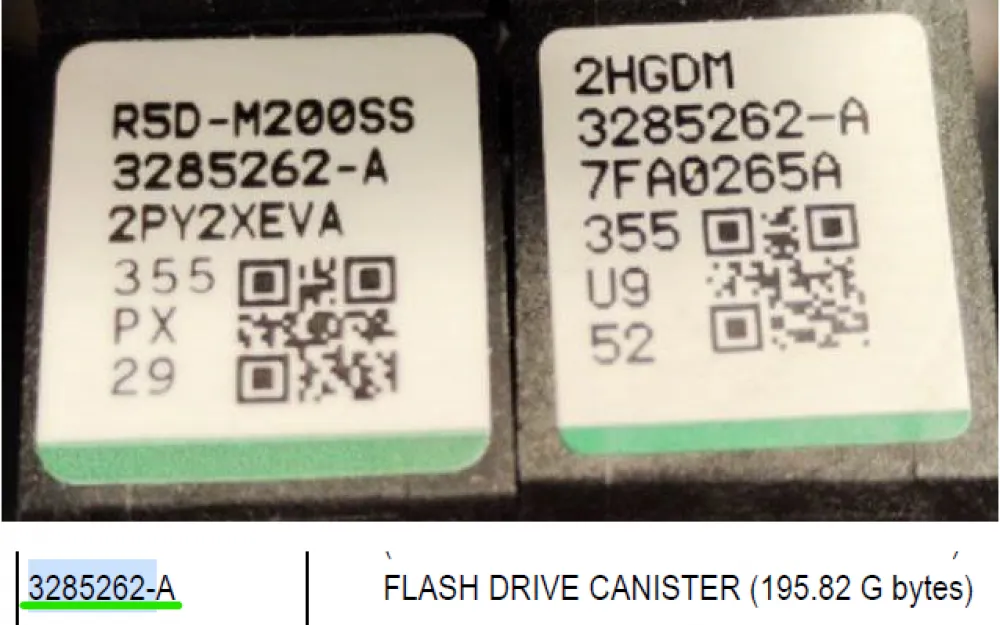 Here’s another example. On the right is the original disk 3285262-A for Hitachi HUS storage systems, and on the left is not. The visual difference is in the model marking R5D-M200SS: this model is for a similar 200Gb SSD, but already from the VSP storage system, the actual article is 5559263-A. And here is a non-original sticker.