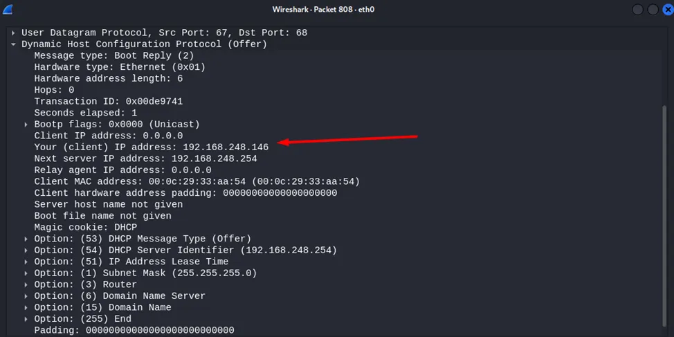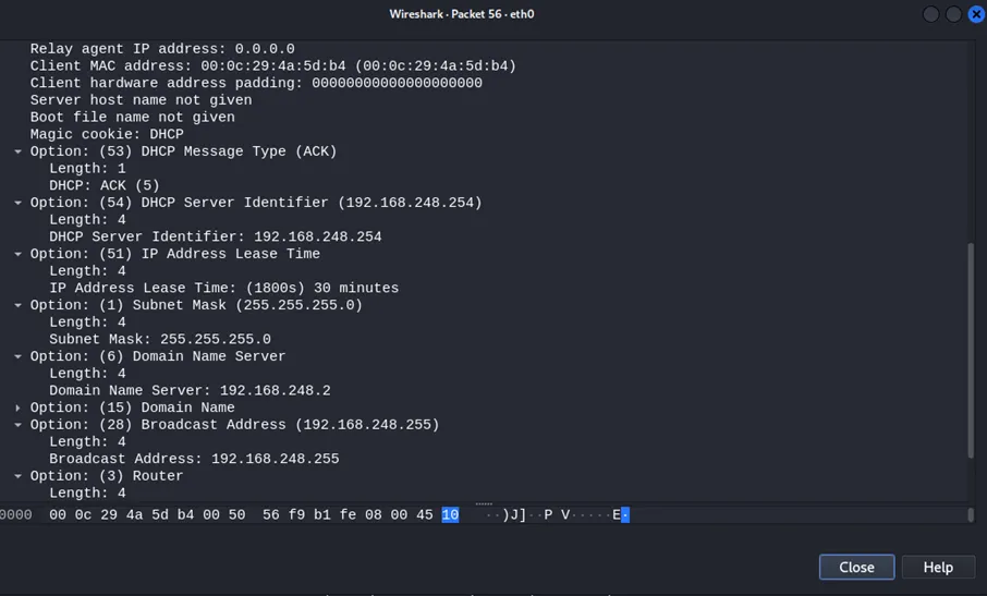 In the Ack packet, we can also find interesting information in the Option 3 Router and Option 6 Domain Name Server fields.
