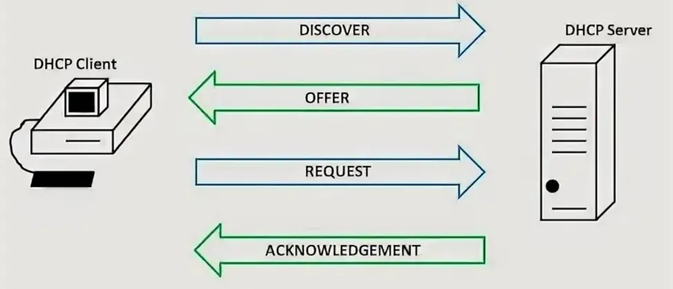 The process of obtaining an IP address consists of four steps (DORA): Discover, Offer, Request, Ack.