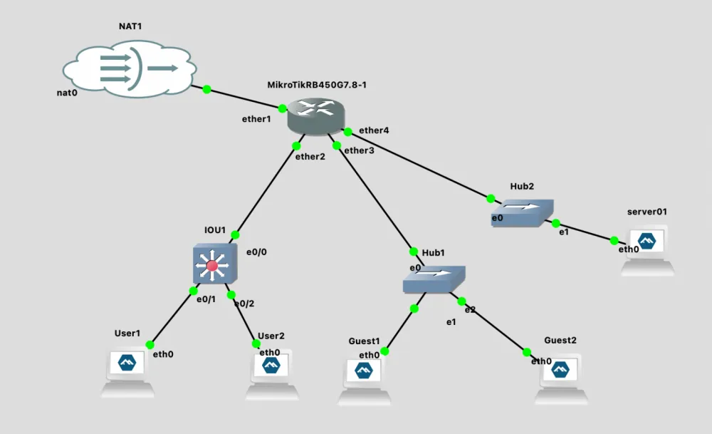 You thought a bit and realized that with the current scheme you are very limited, and even if it's possible to organize guest access (let me remind you that the guest network only has access to the Internet), you will have to start cobbling together solutions on Mikrotik. So you decided that it would be better to switch from physical segmentation of the network to logical segmentation while there's still time.