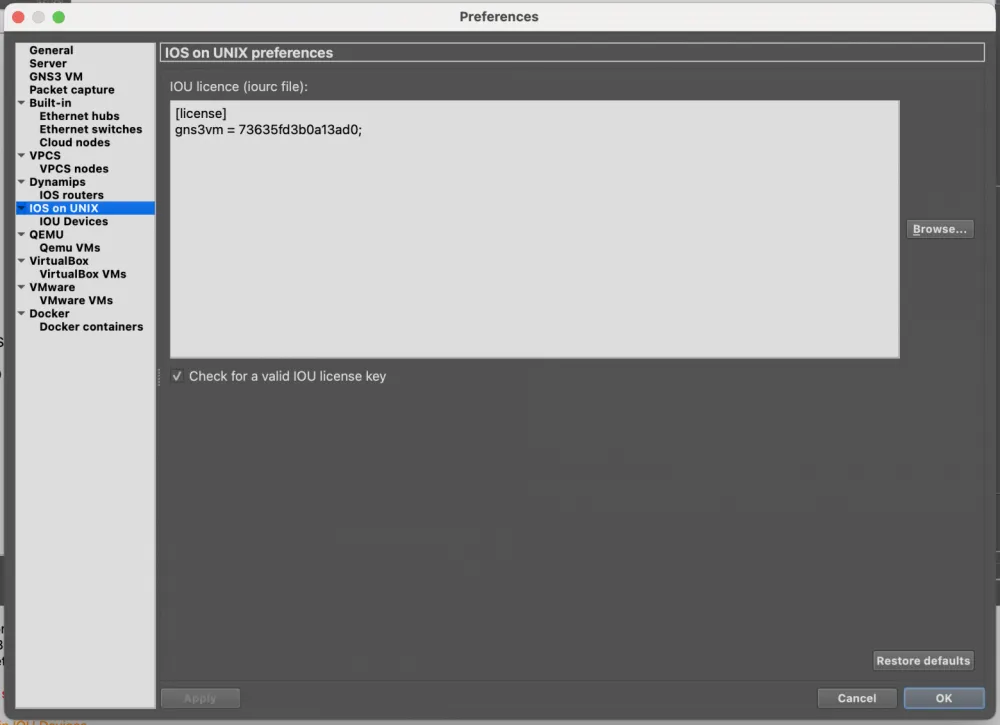 hostid=00000000, hostname=gns3vm, ioukey=25e