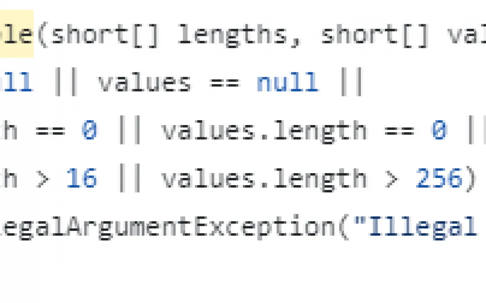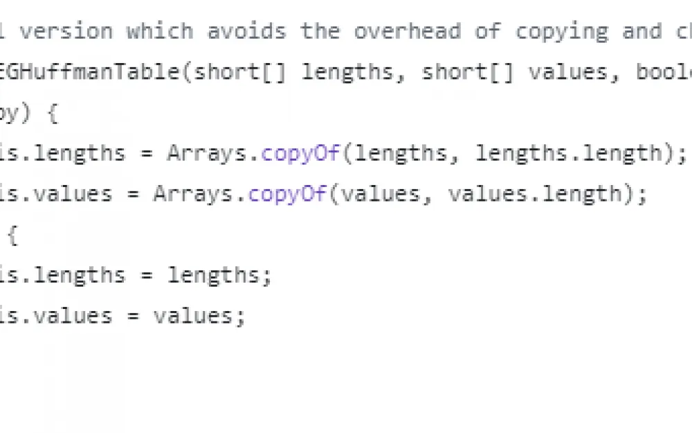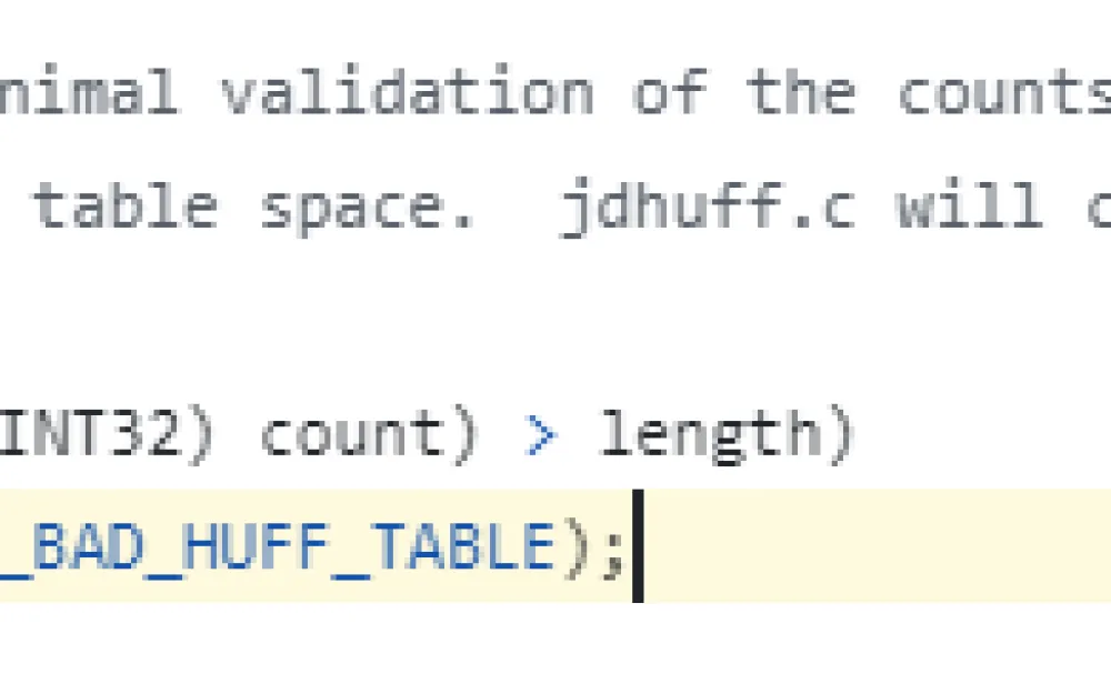What conditions must be met for an error to occur? hvalsLen must be more than 256 elements, and this array is taken as the JPEGHuffmanTable_valuesID field in the table object class, which is passed as jobject table to the setHuffTable function. Let's see who calls the function under consideration: there are only two options, and both are in the setHTables function in the same file. We continue to build the call stack up, in the calls the table argument is passed as elements of the jobjectArray DCHuffmanTables and jobjectArray ACHuffmanTables arrays, which are both arguments of the setHTables function. Very convenient, let's go higher.