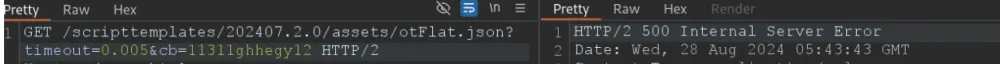 Notably, the same company on another resource was found in the same way as above, the ability to control the value of the Access-Control-Allow-Origin header, as well as a hidden URL parameter "timeout", the value of which determines the maximum time the proxy server will wait for a response from the server, which allows you to easily calculate the average time it takes for a request to go from the proxy to the server, down to nanoseconds, because if the request does not meet the specified time, a 500 status will be received.