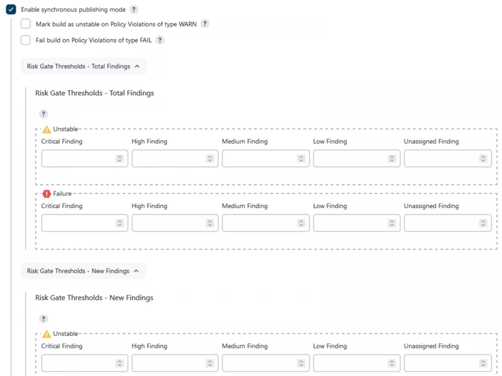 The first good news was that the plugin allows blocking the build depending on the vulnerability database analysis result. Each of our teams can set a threshold after which the build will fail according to their own policies and desired security level.